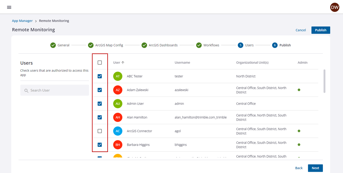 - Select the check box next to the users who are authorized to access this app.