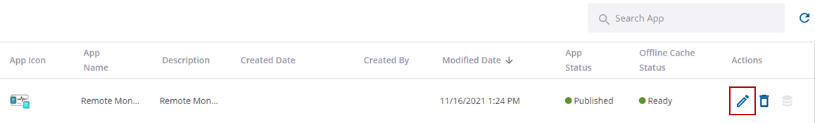 - Click the edit icon to edit the app.
