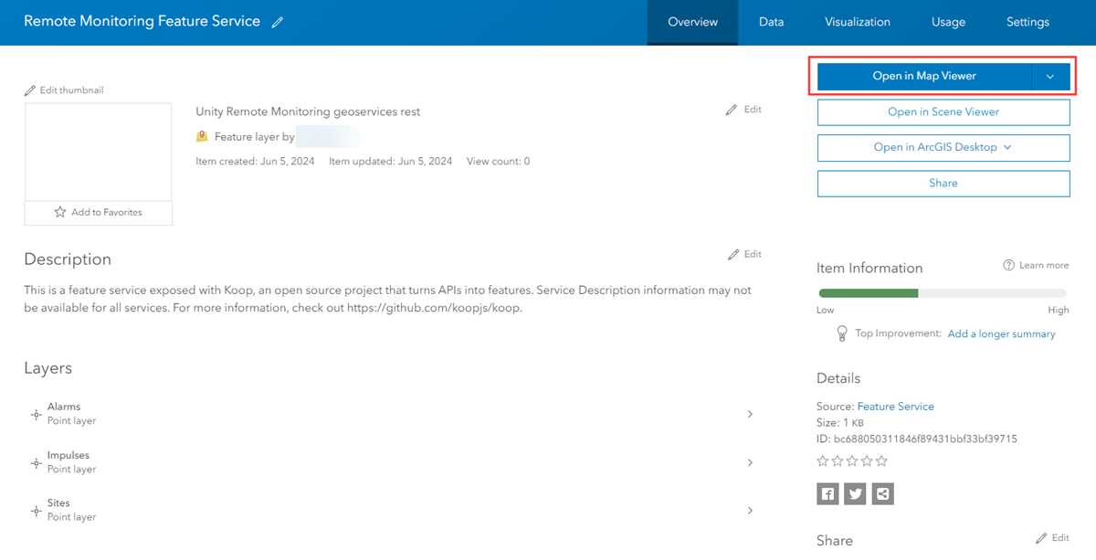 - Click Open Map Viewer to view the data.