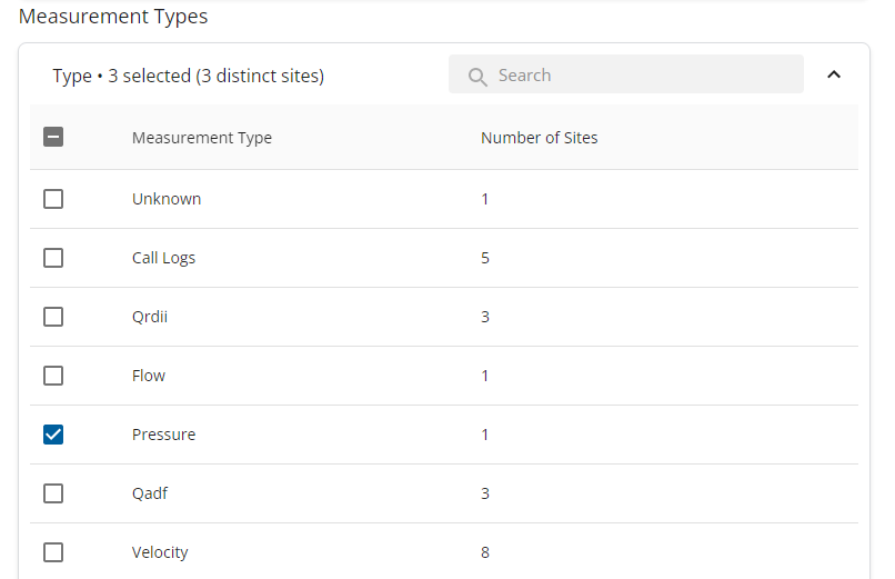 - Under Measurement Types in the Monitoring Site Permissions section, select the measurement types that users in this permission policy will be able to access. Note that a user who does not have access to a site's default measurement type will not be able to view the default measurement report. They also will not see when a site is in an alarm state from the site details.