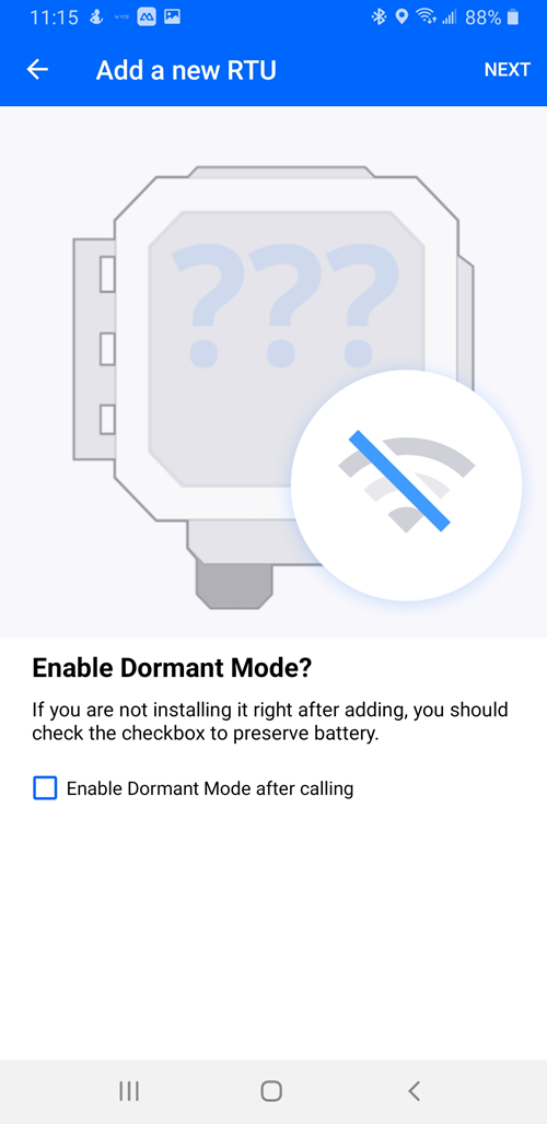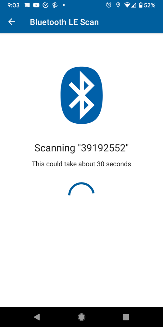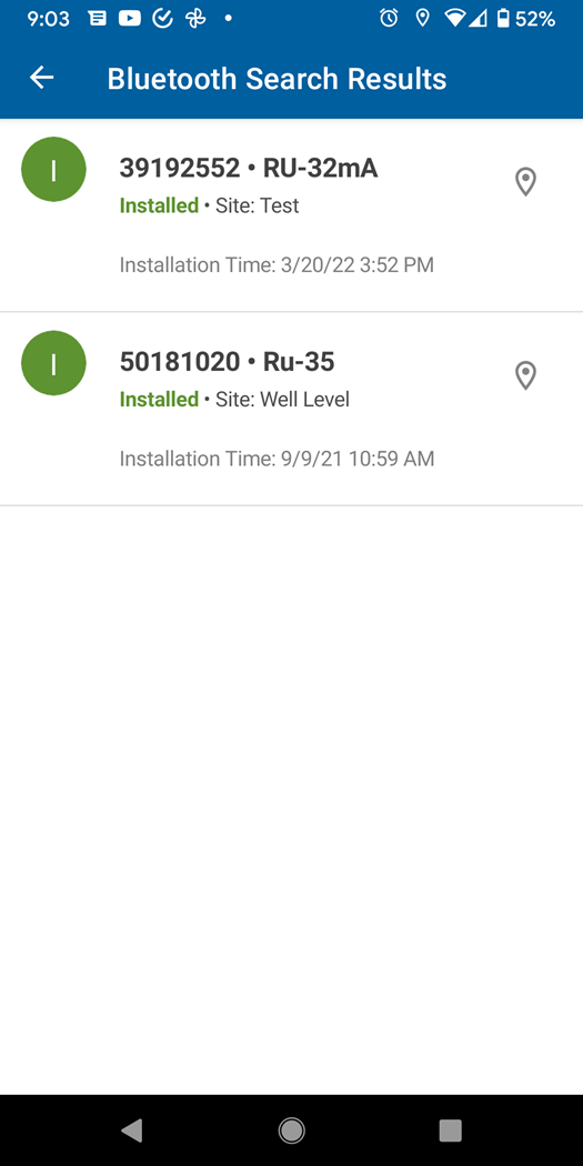 The app will scan for the RTU if the RTU has Bluetooth capabilities.