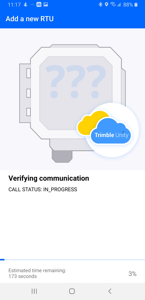 When the system detects that the RTU is calling, the Verifying communication screen loads and shows the progress of the call.