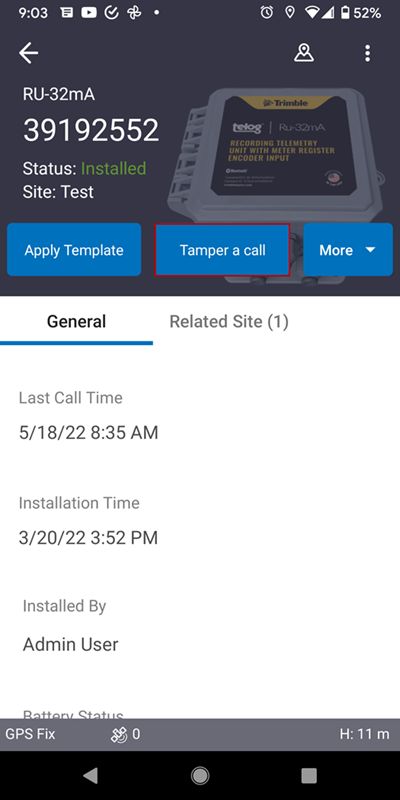 - Tap Tamper a call on the RTU details panel.