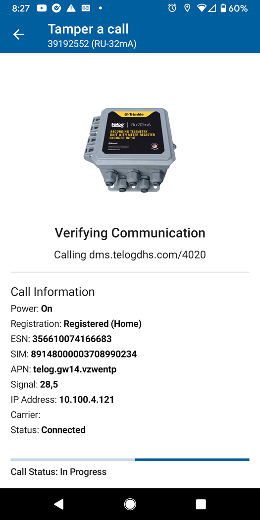 On the Communication Verified screen, the message will say Tamper call has completed successfully.