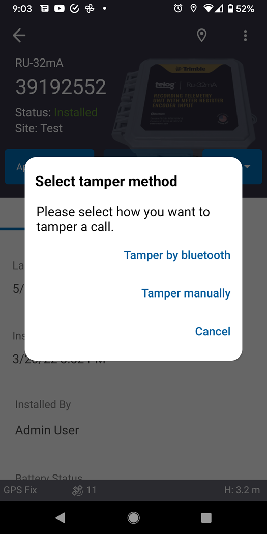 - Tap Tamper by bluetooth or Tamper manually.