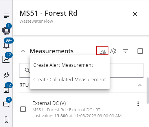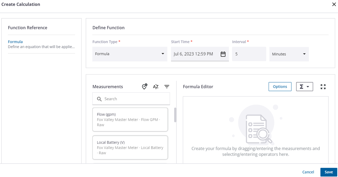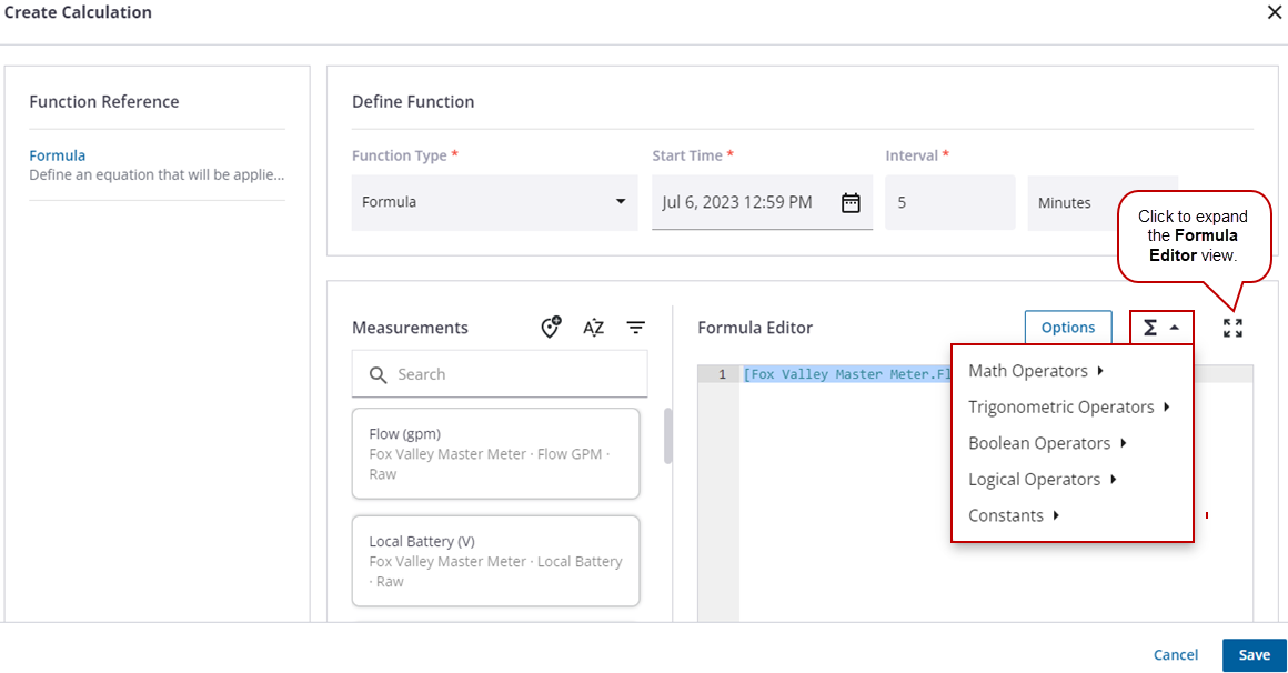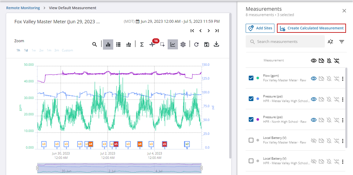 You can enhance your reporting capabilities by using calculated measurements for advanced analytics. Calculated measurements can be created from the monitoring site’s properties panel or from a report.