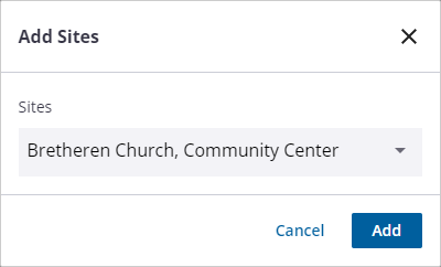 - Select a site or sites from the Sites drop-down list and click Add. Any measurements available in the site(s) you added will appear in the list in the Measurements section.