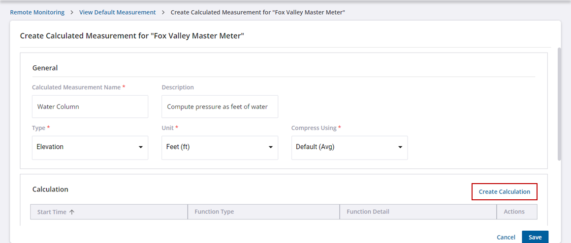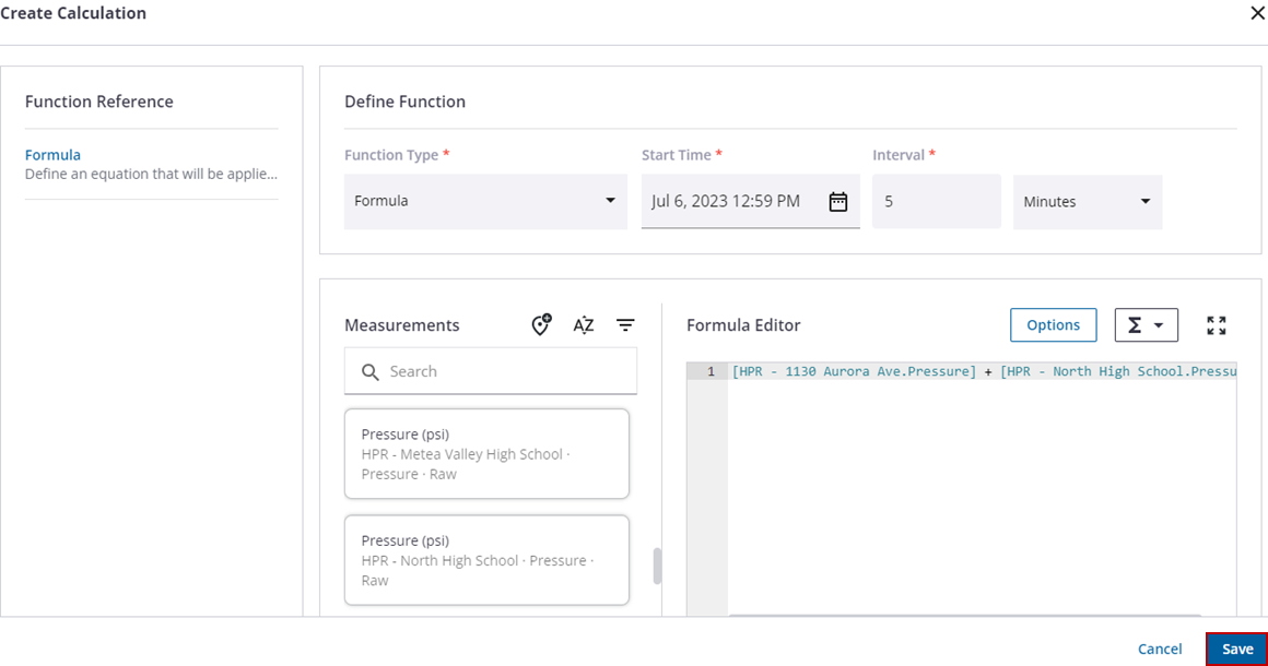 - Click Save to save the calculated measurement. This will create the measurement and start the calculation(s).