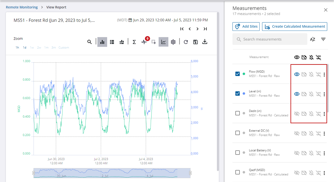 - Click the Measurement Visibility icon to view or remove the measurement from the graph.
