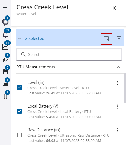 - Alternatively, select two or more measurements, then click the graph measurements icon.