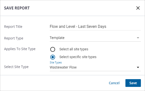 - Select Template from the Report Type drop-down list to save a template report that can be used across sites.
