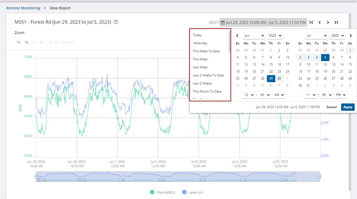 TIP: When a predefined reporting period is selected from the list, that saved reporting period data will show in future reports. For example, if Last Week is selected and the report is saved, future reports will show data from the previous week. When a Custom reporting period is manually selected, future reports will show the static custom data from the custom reporting period.