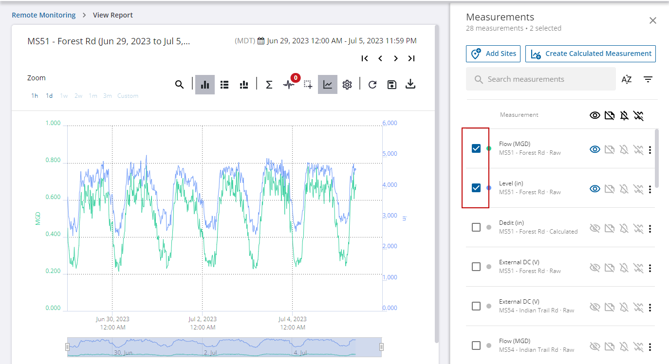 - Graph the measurements you want to include in the report. See Graph Measurements on a Site for more information.