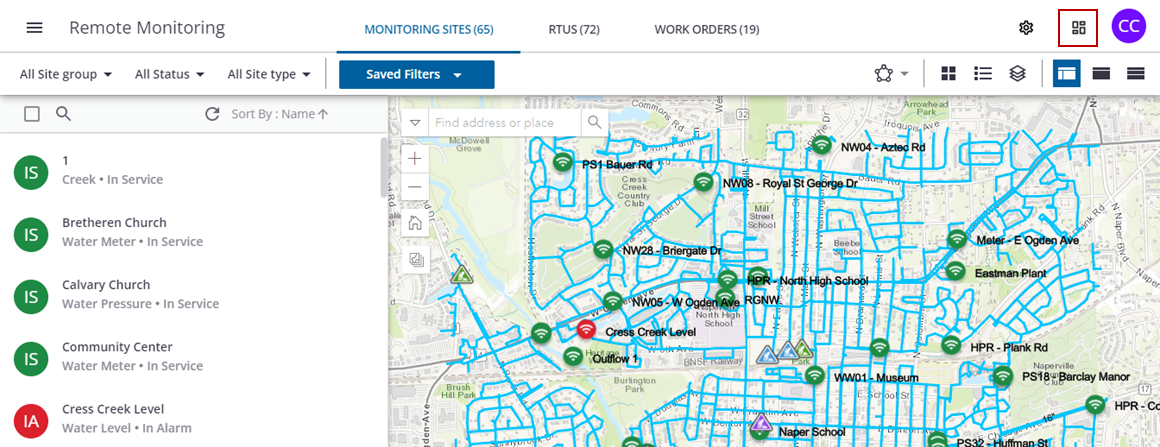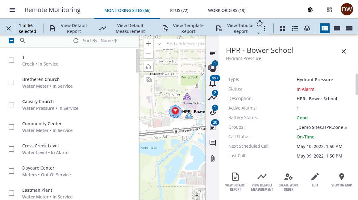 - From the toolbar, click the more icon to view the RTU on the map.