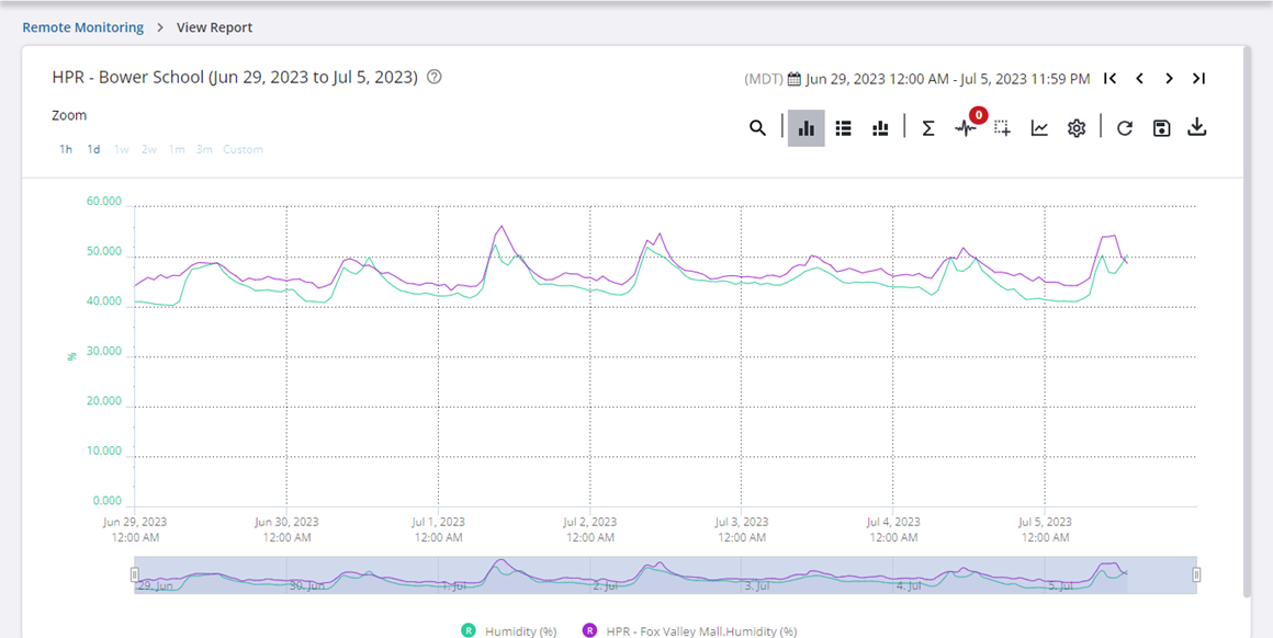 - From the toolbar, click View Humidity Measurement to open the telemetry report for the site(s).