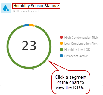 - On the Humidity Sensor Status widget, click a segment of the circle chart to see the RTUs with the specific humidity levels.