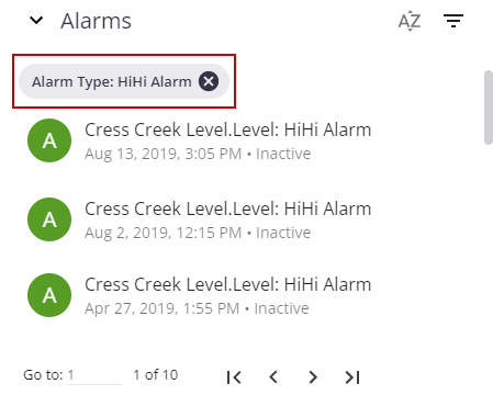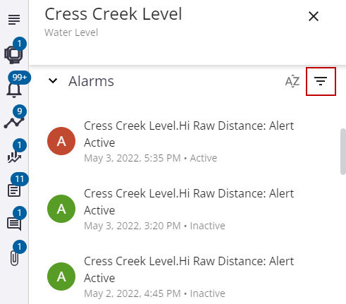 - Click the Filter Alarms icon to filter the list of alarms.