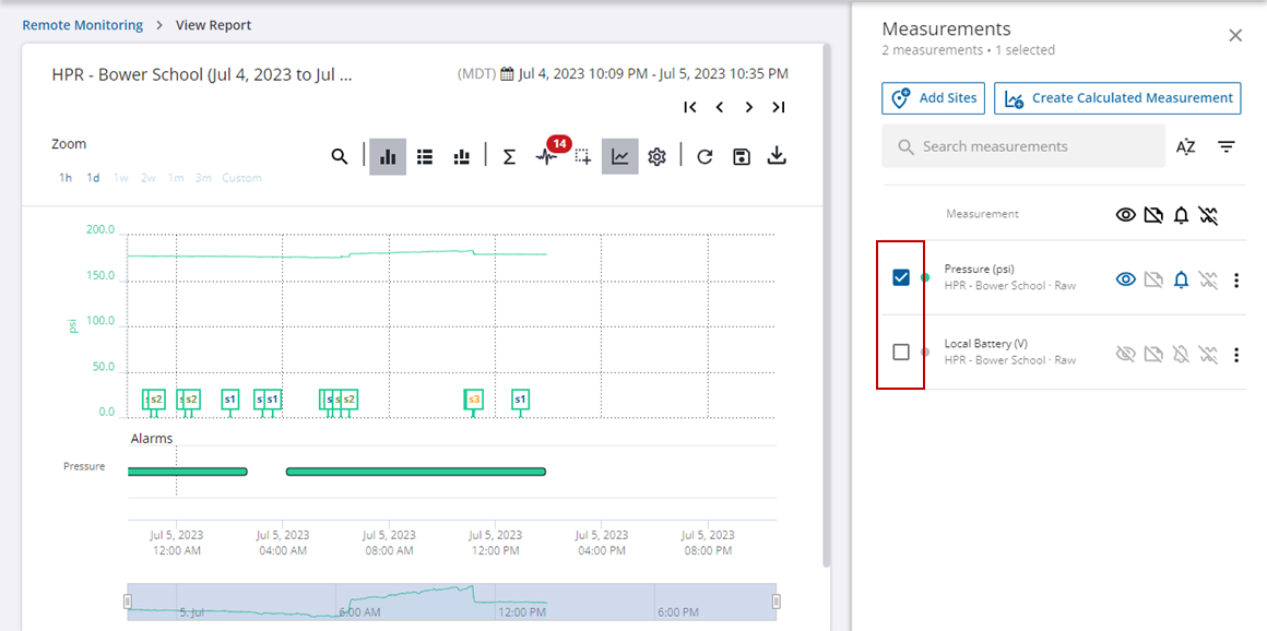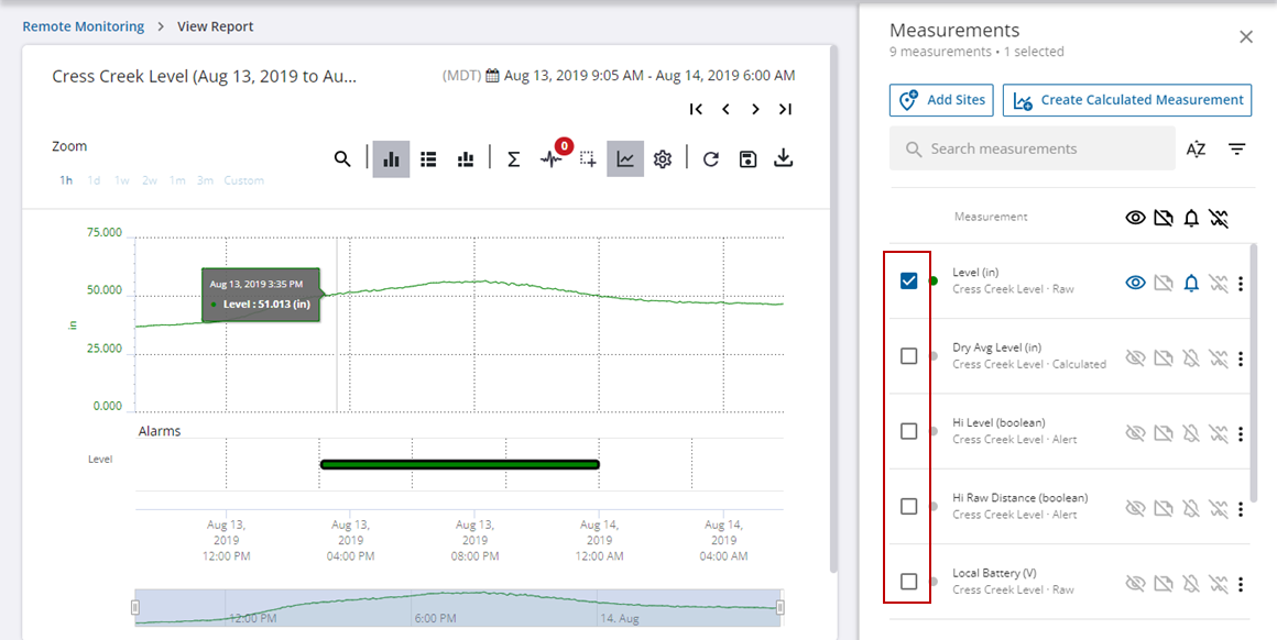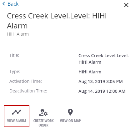 - Click View Alarm to view the telemetry report with the alarm data and measurements.